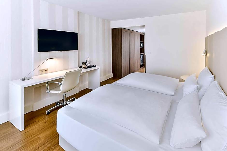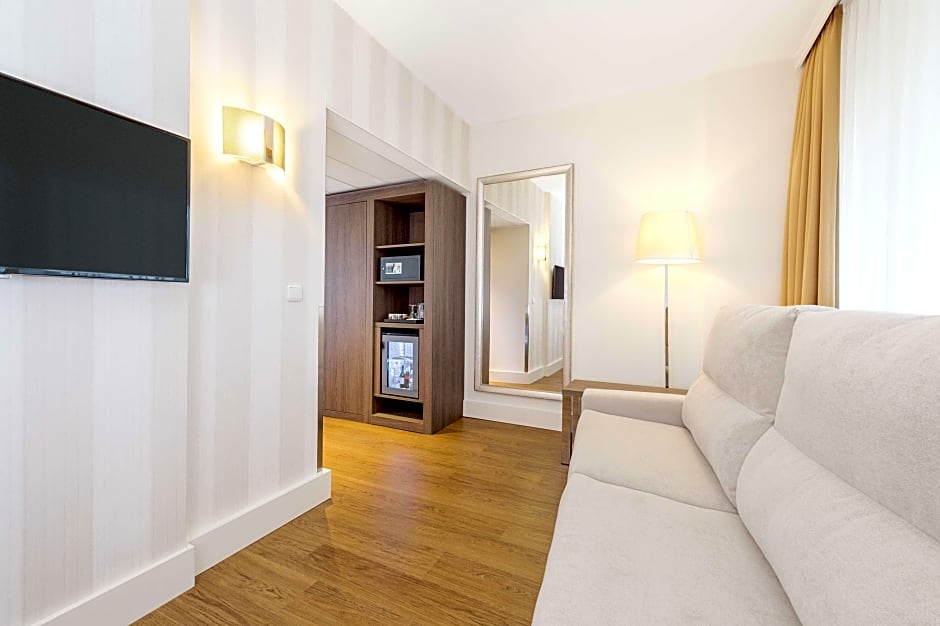 A large desk and chair, a lounge chair, a sofa, armchairs, satellite TV, WiFi, and individually controlled air conditioning. The bathroom comes with a shower.